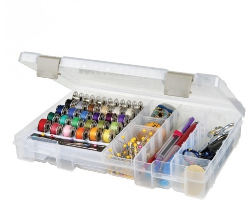 Plastová krabička pro 30 cívek k šicím strojům, nůžky, pinzety atd. (příslušenství není součástí, pouze krabička)