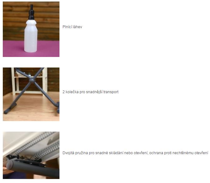 - Přihrádka pro uložení kabelu a žehličky, doplňková ochrana proti spadnutí žehličky