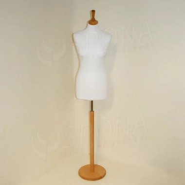 aranžérská panna FIDIA dámská, světlý potah, kruhový stojan,bílé dřevo