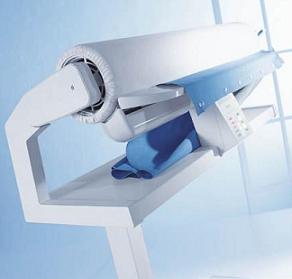Prádlo se dá do mandlu snadno vložit. Položí se na volnou spodní část s topným tělesem a pohyblivý válec tlačí na prádlo zhora. Napařování zespodu zabezpečí zvlášť dobré proniknutí páry do prádla. Velký povrch topného tělesa je ideální právě pro velké kusy prádla, jako je např. ložní prádlo, závěsy atd.
