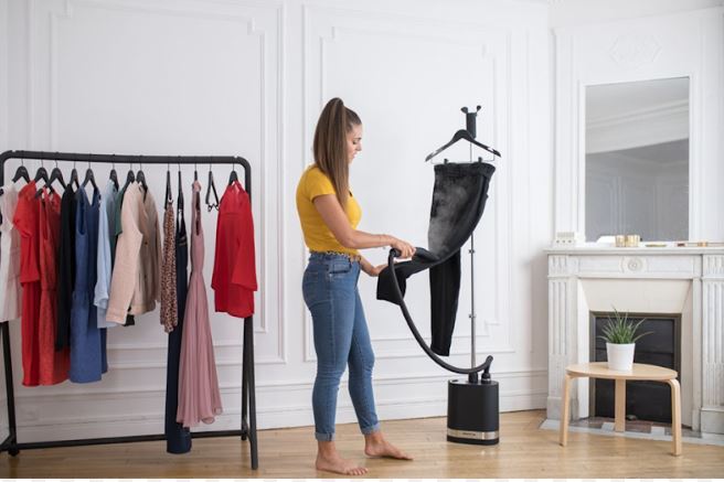 Manipulaci s napařovačem oděvů SteamOne usnadňují kolečka. Ergonomická rukojeť s bohatou sadou příslušenství zajistí dokonalé žehlení oděvů.