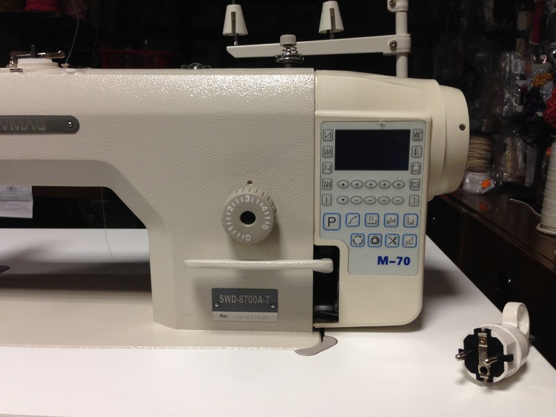 1-jehlový průmyslový šicí stroj se zvětšenou pracovní plochou (vzdálenost mezi jehlou a ramenem je neskutečných 27 cm) s elekronickým ovládacím panelem, se spodním podáváním a zabudovaným servo motorem v hlavě stroje AC Servo 550 W (pro šití lehkých a středních materiálů) - komplet smontovaný a zašitý. Cena bez dopravy, která je vždy individuální dle domluvy.