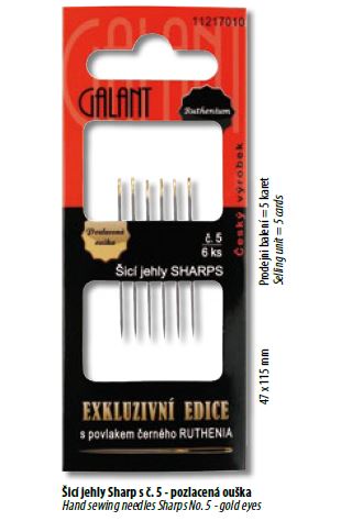 Šicí jehly Sharp s č. 5 - pozlacená ouška