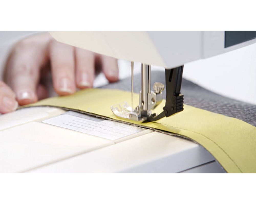 Zvýšená poloha patky pro dostatečné místo k manipulaci se silnou látkou či quilt pod patkou